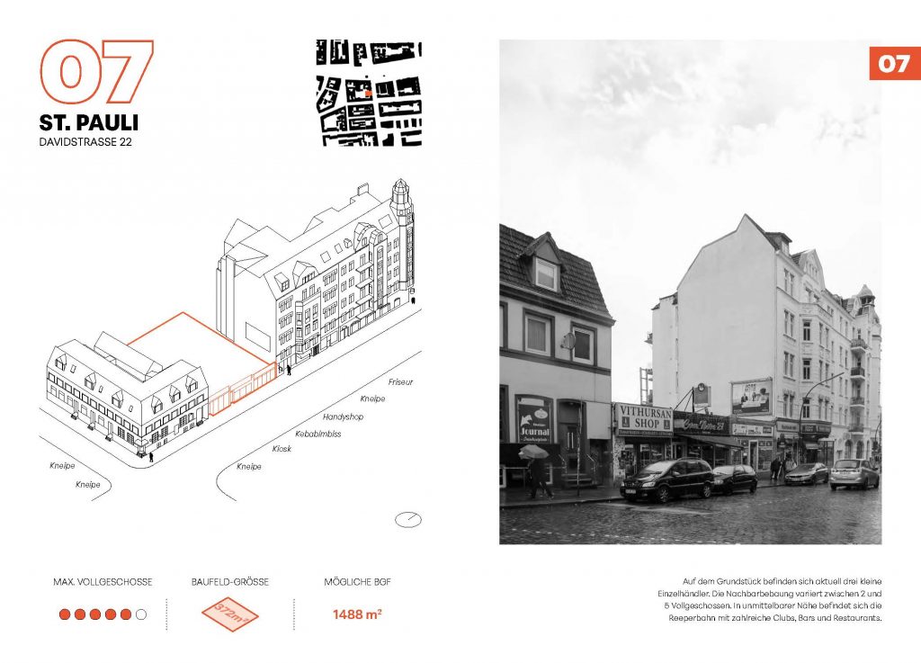Trotz ihres Potenzials sind Baulücken meist kleine Restgrundstücke, die einzeln nur begrenzt Wohnraum liefern. Ihre Stärke liegt in der Summe vieler Nachverdichtungsmaßnahmen. Entscheidend für den Erfolg ist eine sensible bauliche und soziale Integration in die bestehenden Quartiere. Für die weitere Bearbeitung wurde daher ein besonders geeignetes Grundstück in der Langen Reihe in St. Georg ausgewählt, das im nächsten Projektschritt detailliert untersucht und entwerferisch vertieft wird.