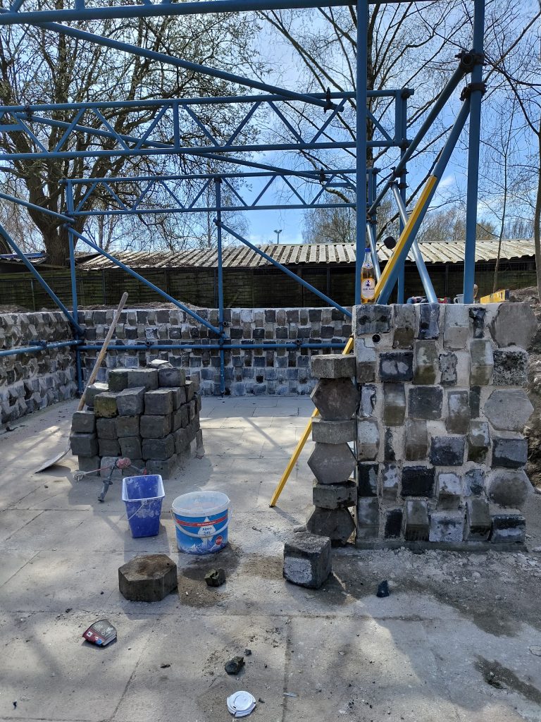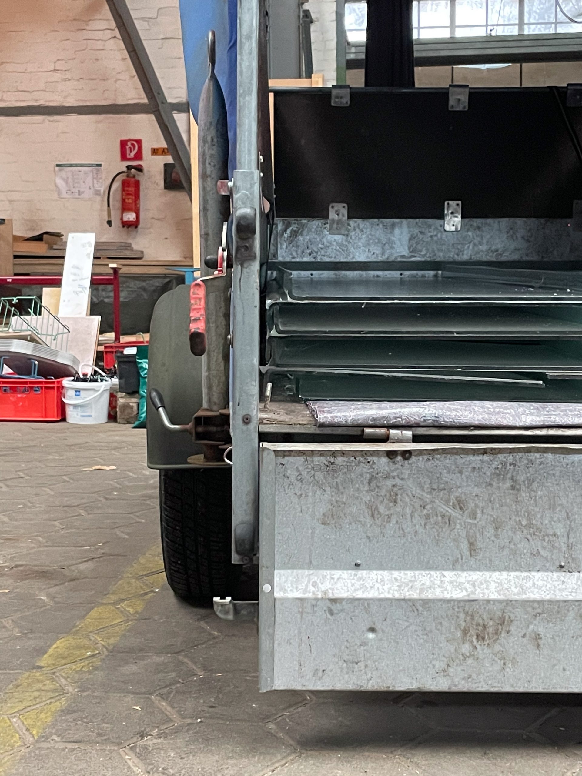 Die bereits beschriebenen Herausforderungen bei der Materialsuche und -akquise wirkten sich auch unmittelbar auch die Lagerung und die Logistik der Materialien aus. Um im Entwurf an den Punkt einer folgenden Ausführung zu kommen, mussten durch den zirkulären Ansatz alle benötigten Materialien festgelegt sein. Dies war leider bei Privatverkäufen wie auf eBay Kleinanzeigen meist erst der Fall, wenn das Material abgeholt wurde. Danach musste das Material bis zum Bau eingelagert werden. Kurz vor Baubeginn war im Grunde das gesamte Gebäude in seiner Baumasse vor Ort gelagert da es natürlich nicht möglich war, wie beim herkömmlichen Bauen, Stück für Stück die benötigten Materialien einzukaufen.