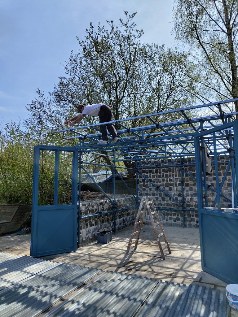 - Das Dach sollte aus einer Art Trapez- oder Wellblech hergestellt werden.