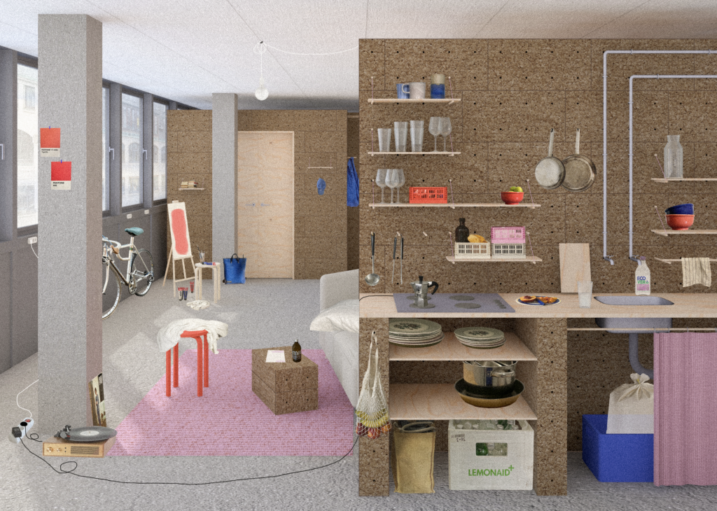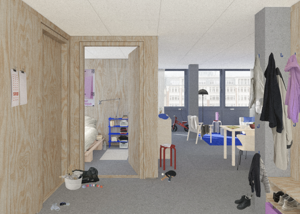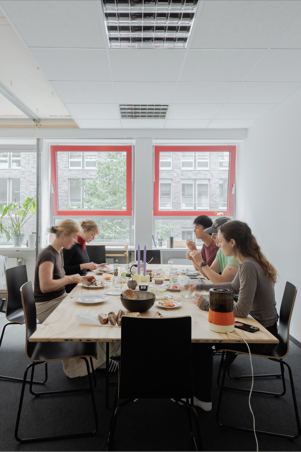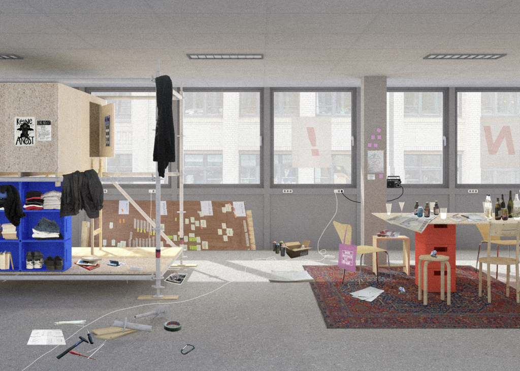 Im Rahmen des Master-Entwurfskurses „Reallabor: Wohnen Radikal Experimentell“ entwickelten wir gemeinsam mit Studierenden temporäre, reversible Wohnstrukturen – und sind im Juli 2025 für vier Wochen selbst in die Fläche eingezogen. Aufgabe der Studierenden war es, die räumlichen Spezifika des Büros zum Wohnen umzucodieren, das Wohnen im Büro sichtbar zu machen und die Wohnerfahrungen ethnografisch zu begleiten.